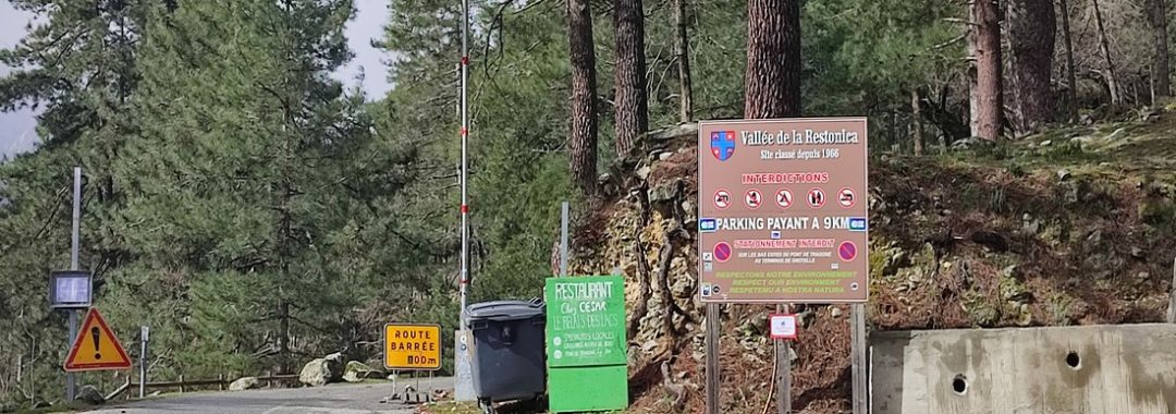 Al llegar a Corté habíamos preguntado a unos gendarmes que nos encontramos, si sabían si se podía llegar a los lagos antes comentados a causa de la nieve, y nos contestaron que no sabían como estaba la nieve pero que había un puente caído y que la carretera estaba cortada por un valla y que por tanto no se podía llegar hasta el parking.