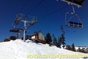 Aprovechamos una de las instalaciones de la cerrada pista de ski, para poder comer algo de forma muy cómoda.