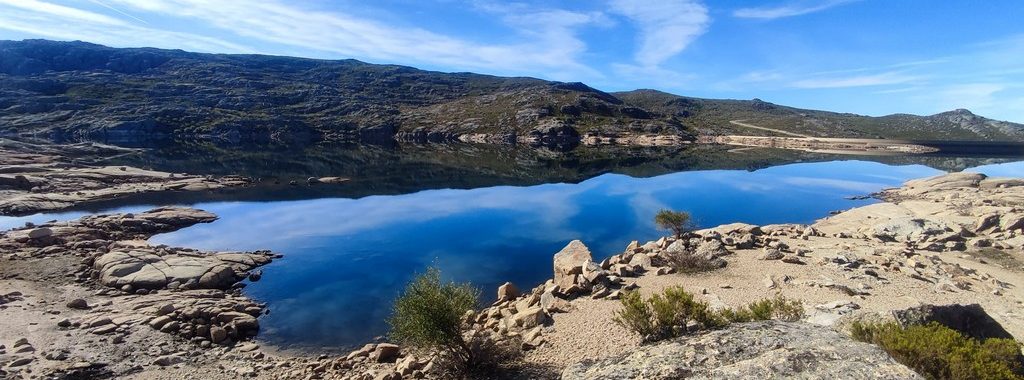 En el recorrido en coche hasta el punto de inicio, situado debajo de la misma presa del lago Comprida, hemos pasado por los bonitos paisajes de los valles glaciares del Zêzere y de Alforfa.