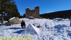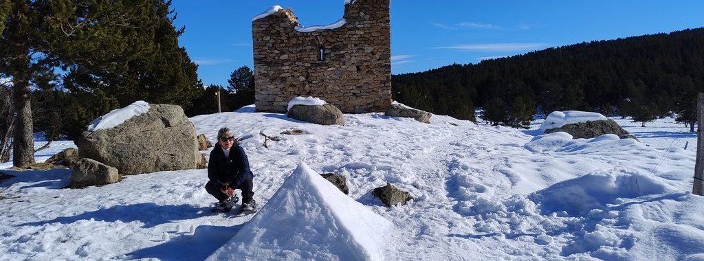 Bonita excursión con raquetas desde el lago Olive a la zona de las Iglesiettes , ya en la zona de Balcére o Valserra (Les Angles) , en donde hay unas ruinas de una antigua iglesia medieval, volviendo después por el Serrat del Pelat con una bonita bajada hasta llegar al camino llamado camino «Le Canal· en dirección a Formigueres, y después ya por el mismo sitio de la ida, hasta el parking donde hemos dejado el coche, al lado del lago Olive.
