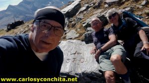 Después de las fotos bajamos unos metros hasta encontrar un sitio para poder sentarnos, comer algo y descansar, iniciando después el descenso, complicado en la parte rocosa como hemos comentado antes.