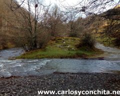 A lo lejos vemos la borna 226, pero por aqui no podemos bajar al rio y continuamos unos metros más, para ver si encontramos una zona más plana, aunque no podemos pasar, por lo que nos conformamos con unas fotos con zoom.