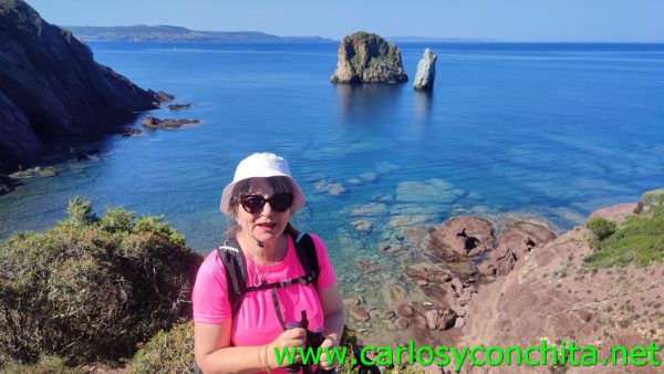 18-06-2023-Porto Flavia![]() Hoy hemos hecho una bonita y calurosa excursión por la costa de Cerdeña, desde Nebida, donde hemos dejado el coche, hasta Porto Flavia, justo enfrente del característico Pan de Azucar. Hay un primer tramo que el camino va por zona de vegetación baja , y después ya seguimos la bonita costa y acantilados, con unos magníficos paisajes y playas, pero sin ninguna sombra... La excursión no ha sido muy larga, (6 km. y 155 m. de desnivel) ya que sólo hemos caminado a la ida (lo explicamos más abajo) pero el calor ha sido muy fuerte, por lo que la clasificamos como "moderada" por ese motivo. Nuestra idea inicial era hacer la ida y la vuelta, y no contábamos con hacer la visita a las instalaciones de Porto Flavia, pero en el pequeño kiosco/bar que hay al final del recorrido, junto a la entrada de Porto Flavia, la encargada que nos sirvió las cervezas para comer nuestro bocata allí, se "asustó" al decirle que después íbamos a volver a Nebida caminando, ya que a esa hora el calor ya era muy fuerte, y como se puede ver en las fotos, no hay ninguna sombra en el recorrido. Así que al final nos convenció, y debido a los horarios disponibles para la visita, decidimos volver a Nebida en un minibús que empezaba allí mismo, recoger entonces el coche y volver a Porto Flavia para poder hacer la visita a las instalaciones , que resultó muy interesante. Y después de estas idas y venidas, tuvimos tiempo todavía de darnos un chapuzón en Portu Caulí. Según nos explicaron en la visita, antes de la construcción de Porto Flavia en 1924 , (el nombre viene de la hija del ingeniero que lo proyectó y construyó), el carbón se llevaba a hombros hasta las playas, en donde se cargaba en unas pequeñas embarcaciones llamadas "bilancelle", (eran las únicas que podían acercarse a la playa) hasta el puerto de Carloforte, en donde se cargaba en los grandes buques para su distribución por todo el mundo. La instalación , muy ingeniosa, se compone de forma muy resumida en dos túneles superpuestos excavados en la roca : en el superior entraba un pequeño tren de vagonetas cargadas con el carbón de la zona, que eran descargadas en unos enormes "silos" excavados debajo de ese primer túnel. Con esta instalación, el tiempo de cargar un gran buque "a mano" que era de 1 mes, pasó a ser tan sólo de 1 día. En los años 60, debido a las restricciones en el uso de carbón en Europa, se dejó de usar , quedando ahora tan sólo como visita turística, pero que realmente vale la pena. Ponemos aquí una foto de la época :