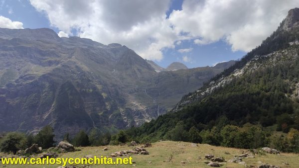 26-08-2025-Llanos de Lalarri![]() Hoy vamos a descansar un poco de las bornas y mojones, no sólo en el aspecto físico del descanso, sino también del mental, para hacer una excursión sin ninguna prisa, sin levantarnos a las 6 de la mañana y sin tener que llegar a un sitio concreto , y elegimos los Llanos de Lalarri. Desde Bielsa donde estamos estos días, nos dirigimos al Parking de la Pineta, a donde habíamos ido el día 22-10-2024-Parking de la Pineta , para ver la zona, y desde donde pudimos localizar en las alturas el puerto donde está la B-320 ( ver 08-08-2025-Borna 320 ) desde la que en su día también pudimos ver abajo del todo el citado parking. Allí empezamos a caminar al lado de la Ermita de La Virgen de la Pineta, (ver leyenda al final de esta publicación ) por un camino con bastante pendiente , dentro del bosque, con bastantes raíces y piedras, que de llano no tenía nada, hasta llegar arriba a una gran y bonita zona plana y verde, rodeada de altas montañas, con varias cascadas, o sea Los Llanos de Lalarri, que es la cola de un antiguo valle glaciar, que ha ido desapareciendo a lo largo de este último siglo. Como que hoy hemos empezado tarde a caminar, porque no teníamos ninguna prisa, ya era hora de comer algo, así que nos hemos sentado debajo de un arbol y allí nos hemos comido tranquilamente el bocadillo. Para volver al parking, podíamos volver por el mismo camino, pero hemos preferido dar un rodeo y bajar por el camino llamado de las Cascadas de Lalarri, algo más largo pero suponíamos más bonito por las cascadas , como así ha sido. Al principio baja muy vertical, de hecho había escalones en algúno de los tramos, y efectivamente hemos visto varias pequeñas cascadas, bastante escondidas entre la vegetación, hasta que hemos llegado abajo, a la zona plana donde está el parking algo más lejos y con algunas curvas del río , en donde hemos tenido algún problema para cruzar el río Cinca y un torrente que se unia a él, ya que el camino había desaparecido , después de las tormentas del año pasado. De hecho había un letrero que indicaba camino prohibido, pero a esas horas ya no podíamos volver atrás y volver a subir todo el camino, por lo que no teníamos más remedio que cruzar el río , y después de mirar varios sitios, finalmente hemos podido hacerlo sin mojarnos demasiado...si hubieran puesto el letrero arriba al principio del camino seguramente no habríamos bajado, pero realmente al final no ha sido tan dificil. Hemos clasificado la excursión como "Fácil", sin considerar el cruce del río, así que antes de hacerla, recomendamos averiguar si se puede pasar por esa zona. Hablando de la Ermita de la Virgen de la Pineta, hay una leyenda que dice que los franceses construyeron una ermita en el Circo de Troumouse , pero no tenían ninguna virgen para poner , por lo que pasaron a España y la robaron de la ermita de la Virgen de la Pineta. El final de esta leyenda es algo distinto según sea la versión francesa o la española, por lo que ponemos aquí las fotos de esta historia que hemos visto en el Circo de Troumouse ( ver 14-09-2023-Borna 321 (Port de la Canau) ) y en el Valle de la Pineta (ver album de fotos de hoy )