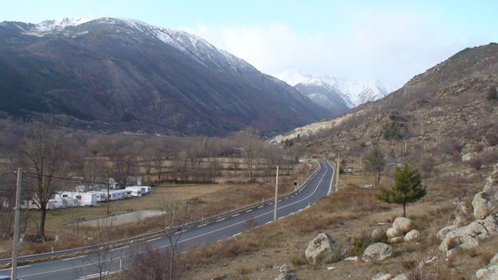 En Mont Louis, encontraremos 2 rotondas , en las cuales siempre elegiremos la dirección a Les Angles, pasaremos por la población de La Llagone, y poco despues llegaremos a una rotonda que nos indica a la izquierda Les Angles, pero nosotros seguiremos recto en direccion a Formigueres