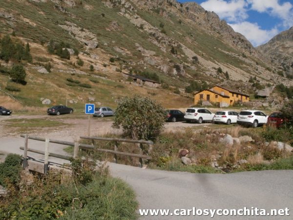 2---) Fuera de la epoca en que el paso está cerrado, podemos llegar con el coche hasta el final del Valle, el parking de la Baladosa.